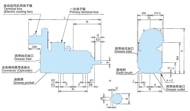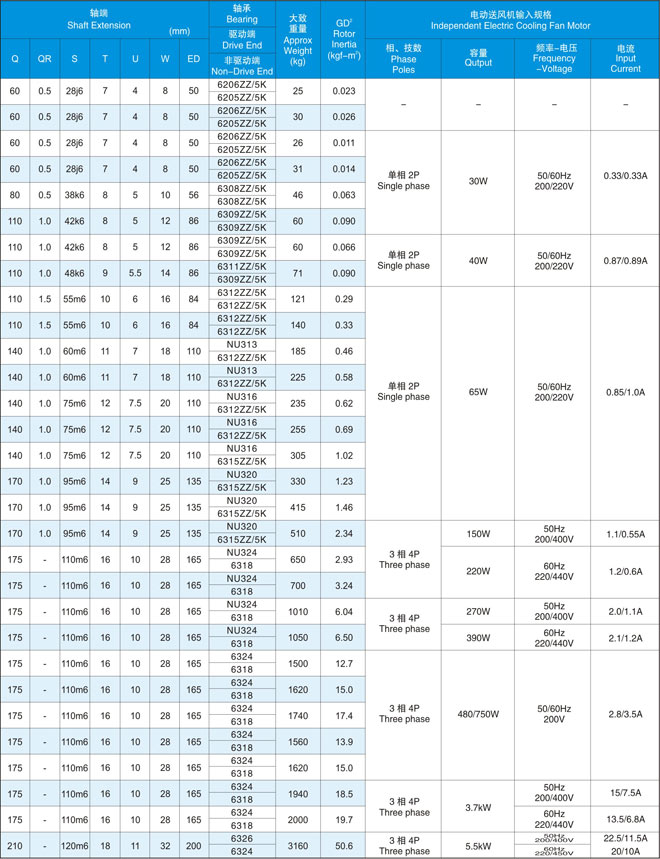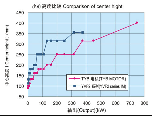 在同一輸出下中心高度比本公司YVF2系列變頻器專用IM下降2格。另外,電機(jī)重量也有大幅度減輕。(與本公司YVF2系列變壓器專用IM相比減輕32-57%