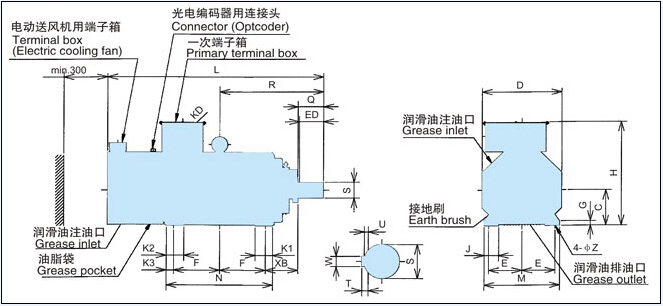 注3) 375kW及450kW基底速度1500 min-1的電機(jī)轉(zhuǎn)速范圍為1800~1500 min-1。而且,450kW基底速度1200 min-1的電機(jī)轉(zhuǎn)速范圍為1500-1200 min-1(★標(biāo)記)。