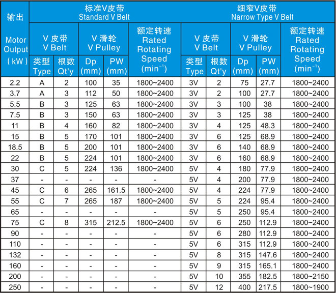 3.標(biāo)準(zhǔn)V皮帶、V滑輪適用表